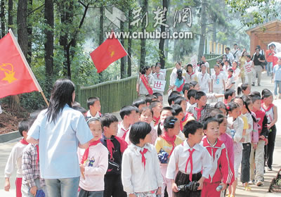 昨日,武漢市洪山區(qū)九峰鄉(xiāng)1700多名小學生興高采烈地來到武漢九峰鄉(xiāng)森林動物園,參加別開生面的慶“六一”活動。孩子們在“人·動物·未來”百米長卷上簽名,以表示愛綠色家園,創(chuàng)美好明天的決心。這是孩子們游園的情景。