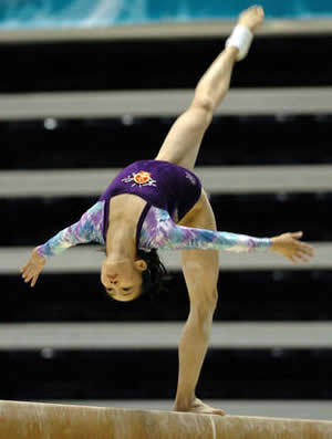 新華社照片,伊茲密爾,2005年8月15日,體操――中國體操隊再添兩金 8月15日,中國選手范曄在比賽中。當日,在第二十三屆大運會女子體操平衡木比賽中,范曄以9.200分的成績獲得銀牌,她的隊友張楠以9.487分的成績奪得冠軍。