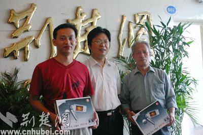 兩位獲2800元手機大獎的幸運讀者與荊楚網(wǎng)副總編輯合影