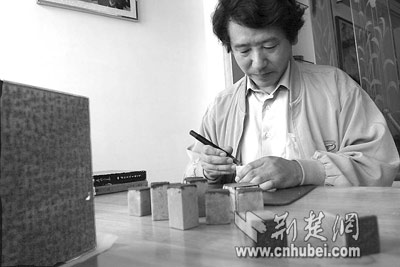 對(duì)于普通百姓來說,甲骨文是深邃而陌生的,但對(duì)46歲的柴有煒來說,卻是靈感的源泉。從1985年開始鉆研甲骨文篆刻印章,20年來,柴有煒已篆刻了200多方甲骨文印章,這些作品有的入選全國篆刻藝術(shù)展,有的被人珍藏。最讓柴有煒自豪的是,在全國性書畫大賽中,他的甲骨文印章曾五次獲金獎(jiǎng)。