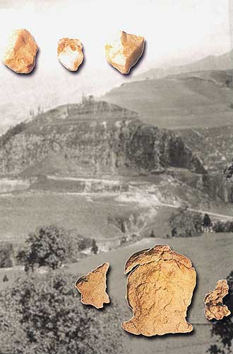 石器:工具(上,長(zhǎng)3.7~4.6厘米)