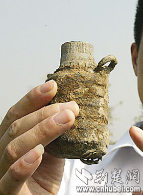 昨日上午9時(shí)30分,康先生在漢口江灘岸邊沙地上散步時(shí),發(fā)現(xiàn)一個(gè)手雷。這個(gè)手雷直徑約5厘米,高約7厘米,銹跡斑斑,尚未引爆。據(jù)分析,這可能是日本侵略武漢時(shí)留下來的,民警隨后將它帶走。荊楚網(wǎng)楚天都市報(bào)記者劉中燦 張皓 實(shí)習(xí)生曾莉張鈺