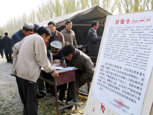 工作人員在新疆澤普縣奎依巴格鎮(zhèn)防疫檢查站登記進(jìn)出車輛(11月12日攝)