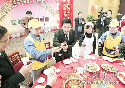 武漢因你們而美麗 苗圩請農(nóng)民工過小年(圖)