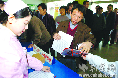 記者在醫(yī)院體檢登記冊上發(fā)現(xiàn),除湖北省各地區(qū)來漢的務(wù)工人員外,還有不少農(nóng)民工來自四川、安徽、江西、河南等地。據(jù)院方介紹,除不屬于此次服務(wù)范圍的武漢市7個中心城區(qū)市民外,其他前來體檢的外來務(wù)工人員都享受了免費(fèi)服務(wù)。