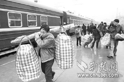 全國首趟農(nóng)民工專列抵漢 車上一大半是湖北人