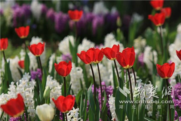 郁金香、風(fēng)信子、洋水仙、大花蔥……春日里最色彩斑斕的球根花卉家族,也到了綻放風(fēng)姿的好時(shí)候。武漢植物園通過(guò)多種球根花卉混播的手法,打造球根花田、花徑、花帶。60萬(wàn)株球根花卉已經(jīng)開放三成,在武漢植物園中心草坪、菊花圃、湖岸帶等地斑斕盡放,與園區(qū)的奇花異草、高大的喬木、蜿蜒的小徑、青翠的草坪、幽靜的水域結(jié)合,構(gòu)成一幅幅色彩繁茂的畫卷。