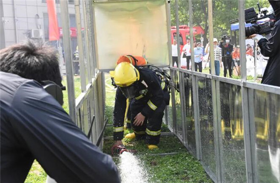 消防救援隊(duì)員“滅火”演練