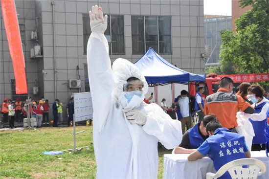 消防救援隊(duì)員進(jìn)入現(xiàn)場“滅火”江岸區(qū)各街道及百步亭社區(qū)17支代表隊(duì),參加了應(yīng)急常識(shí)答題、疫情防控“一穿三戴”、手提滅火器往返接力跑、模擬緊急救治傷員等應(yīng)急技能比武。