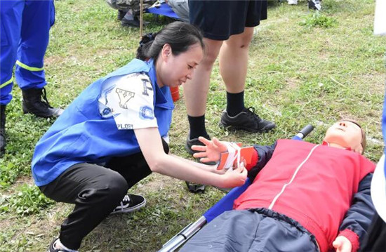 藍(lán)天救援隊(duì)員展示心肺復(fù)蘇技術(shù)