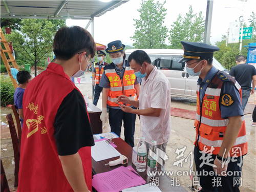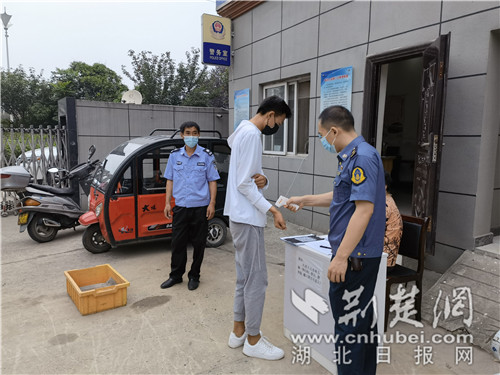 “大娘,請戴好口罩,我來幫您測下體溫?,F(xiàn)在疫情有擴散趨勢,千萬要做好防護?!?月6日,漢十支隊路政員陳紅濤一邊向居民宣傳防疫知識,一邊熟練地替大家測量體溫。