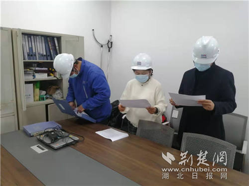 咸寧市交通運(yùn)輸局、港航局人員檢查葛洲壩嘉魚(yú)水泥碼頭安全工作臺(tái)賬