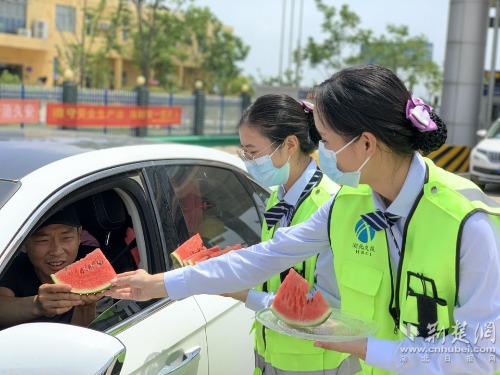 荊楚網(wǎng)(湖北日報(bào)網(wǎng))訊( 通訊員 楊晨、常文召)“您好,師傅,吃塊西瓜涼快下吧!”“您好,先生,喝碗綠豆湯解解暑吧!”