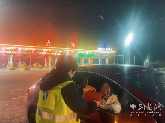 荊楚網(wǎng)(湖北日報網(wǎng))訊(記者趙秀琳 通訊員鮮于露華)1月15日,農(nóng)歷臘月二十四,宜昌地區(qū)也迎來了春運后的首輪降雪,歸家的游子馬不停蹄邁著匆忙的腳步,追趕那闔家團圓的歡聲笑語。臨近春節(jié),迎著漫天飄飛雪花,宜昌的“南大門”——點軍收費站進出城區(qū)流量明顯增多。管理所在做好除雪保暢同時,積極開展“雪天送溫暖”志愿服務活動,讓司乘感受到“宜路”溫情。
