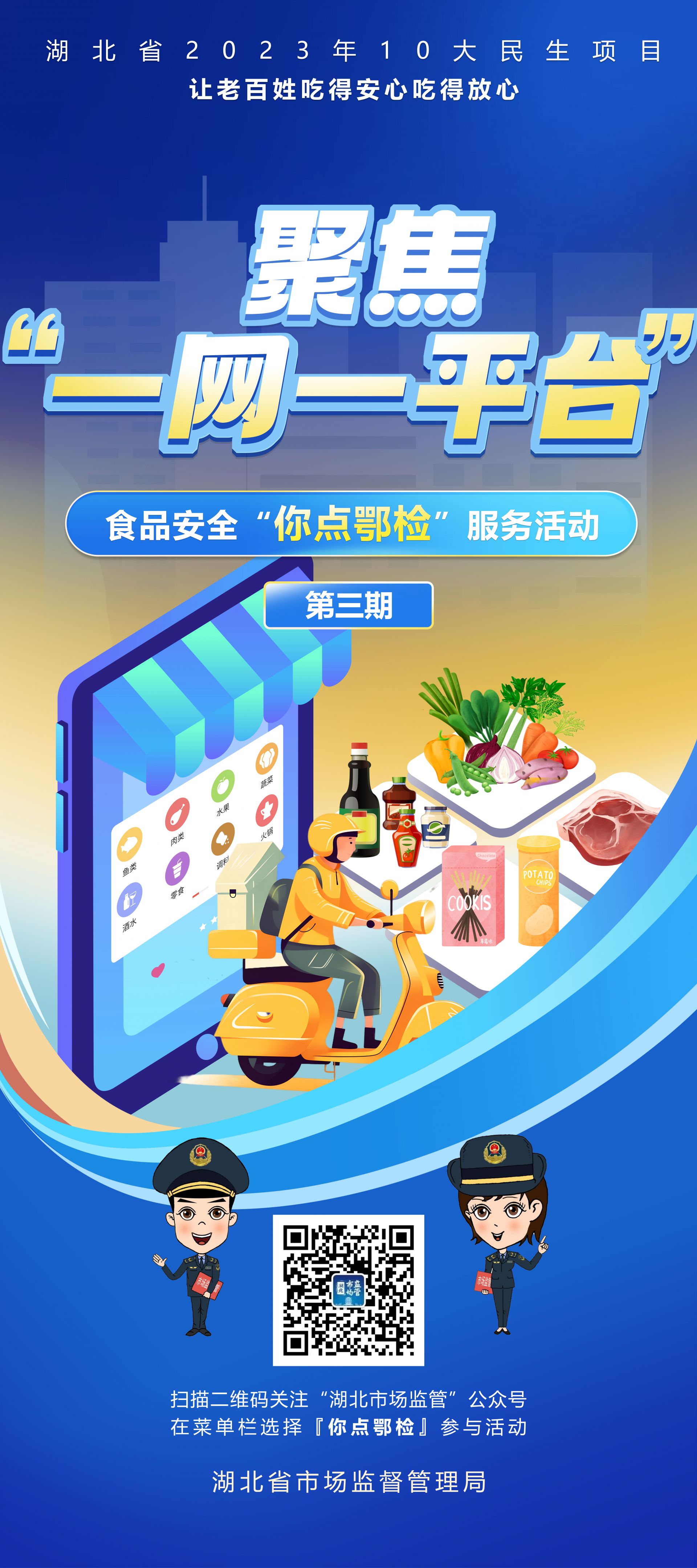作為2023年度食品安全“你點鄂檢”服務(wù)活動的“第三站”,此次點選主要圍繞群眾比較關(guān)注的食品網(wǎng)購平臺和網(wǎng)購食品種類,面向全省17個市州開展點選。