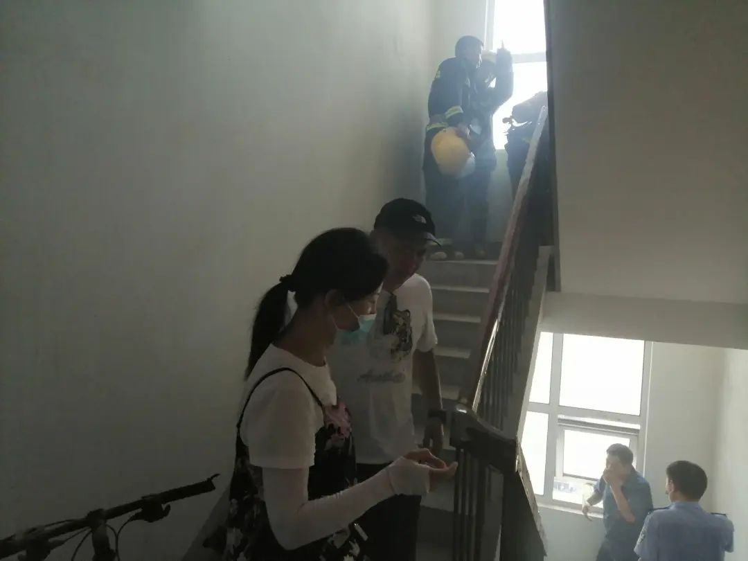 ▲某小區(qū)住戶(hù)家中失火,黃厚娟爬上17樓組織疏散群眾。(社區(qū)供圖)