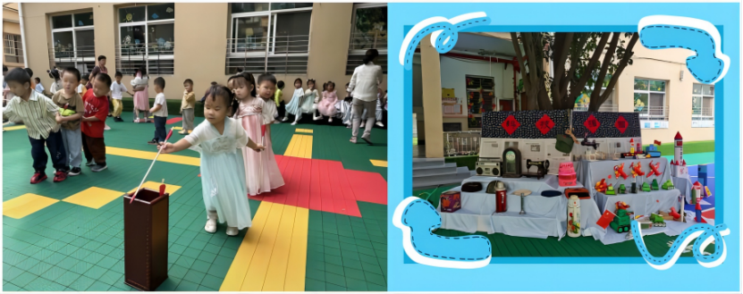 我們的教師是“百變幼師”,是“非遺工匠”、是“音樂(lè)家”、是“編劇”、是釘釘錘錘的“維修家”,還是手工出色的“裁縫”……在“百變幼師”的感染下,孩子們也練就“十八般武藝”。