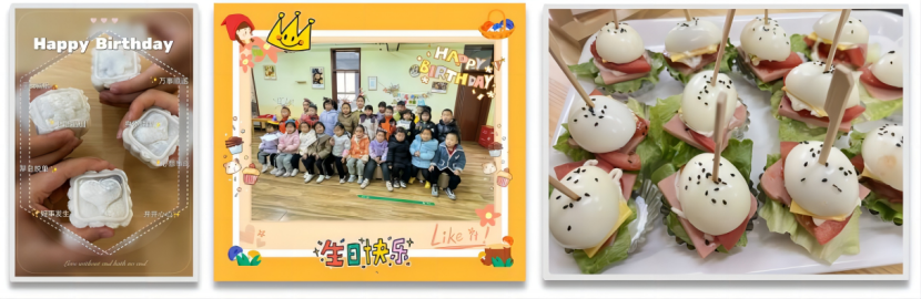 同時(shí),將烘焙課程與幼兒集體生日有效融合,引導(dǎo)幼兒享受悅納自己和他人的幸福。
