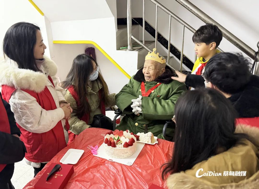 1月17日上午,龔家?guī)X社區(qū)黨員滿懷敬意,帶著精心準備的生日蛋糕和米油等生活物資,來到張業(yè)榮老人家中,為他補辦100歲生日。張業(yè)榮佩戴著“光榮在黨50年”紀念章,深情高唱《沒有共產黨就沒有新中國》,與大家一起重溫入黨誓詞,講述往昔革命故事。