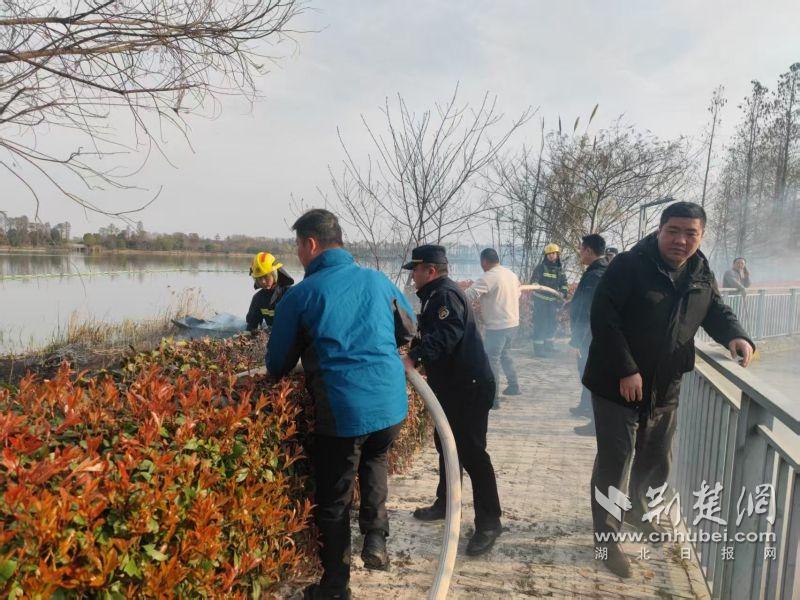 當日下午,東湖風景區(qū)城管執(zhí)法局四中隊隊員王建偉、宋威、劉鑫宇在九女墩附近巡查時,發(fā)現(xiàn)華僑城運動中心南山草木集門店附近有濃煙升起。他們迅速趕到現(xiàn)場,發(fā)現(xiàn)起火點為門店下方野塘中的蘆葦和干草,起火原因不明。由于野塘地勢復雜,無法直接取水滅火,現(xiàn)場情況較為緊急。