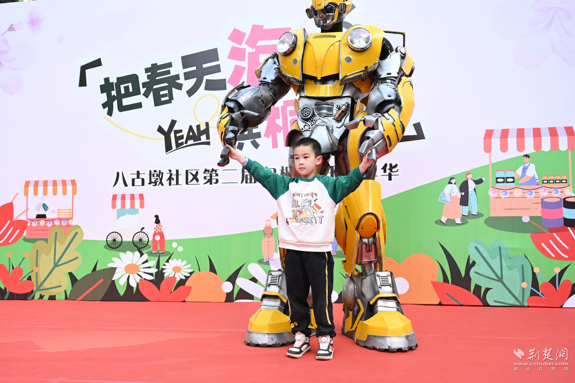 全民共建聚合力。活動(dòng)籌備階段,社區(qū)黨委充分發(fā)揮居民議事會(huì)作用,發(fā)動(dòng)30余名居民志愿者成立策展專(zhuān)班。轄區(qū)居民羅先生主動(dòng)請(qǐng)纓,免費(fèi)贊助大黃蜂機(jī)器人、小丑巡游等氛圍裝置,并與社區(qū)文藝團(tuán)隊(duì)自編自演的5支主題舞蹈形成創(chuàng)意碰撞。當(dāng)三米高的炫酷機(jī)器人牽手小丑姑娘巡游時(shí),現(xiàn)場(chǎng)瞬間化作歡樂(lè)海洋,居民們爭(zhēng)相與巡游隊(duì)伍合影,自發(fā)在朋友圈發(fā)起“泡桐花下的奇遇”話題互動(dòng),活動(dòng)未半已收獲上百人次線上傳播。