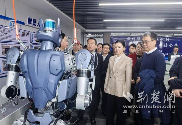 這是湖北省首個(gè)機(jī)器人領(lǐng)域技術(shù)創(chuàng)新中心,該中心由湖北科峰智能傳動股份有限公司牽頭,聯(lián)合華中科技大學(xué)、武漢大學(xué)等20余所高校院所及產(chǎn)業(yè)鏈頭部企業(yè)共建,聘請中國工程院院士陳學(xué)東擔(dān)任戰(zhàn)略咨詢委員會主任、中國科學(xué)院院士劉勝擔(dān)任學(xué)術(shù)委員會主任。這標(biāo)志湖北在機(jī)器人核心技術(shù)創(chuàng)新與產(chǎn)業(yè)轉(zhuǎn)化上邁出關(guān)鍵一步。今年亮相“新春第一會”的“天問”1號人形機(jī)器人,由武漢大學(xué)劉勝院士團(tuán)隊(duì)研發(fā)。全身關(guān)節(jié)有30個(gè)自由度,靈巧手有7個(gè)自由度。它的傳感器、靈巧手、仿生關(guān)節(jié)和芯片等核心部件,80%實(shí)現(xiàn)了“鄂研鄂產(chǎn)”。