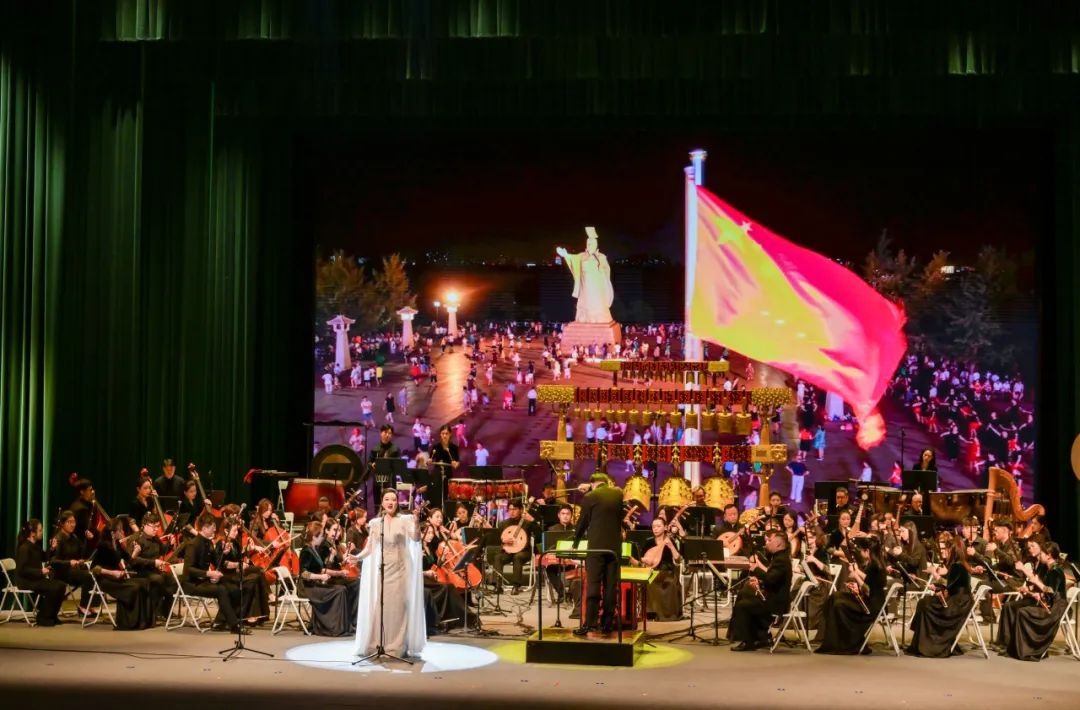 整場演出巧妙融合傳統(tǒng)民樂精粹與時代發(fā)展脈動,《春江花月夜》流淌千年文脈,《絲綢之路》激蕩開放胸襟,《百鳥朝鳳》以嗩吶絕技展現(xiàn)非遺魅力。