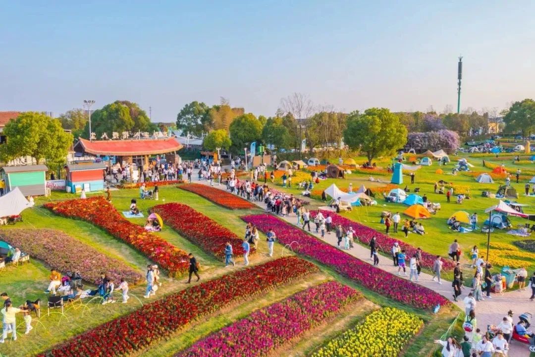 五月的武漢花博匯,宛如一幅絢麗的春日畫卷。馬鞭草紫浪翻涌,玫瑰、月季嬌艷欲滴,大花蔥亭亭玉立,繽紛花海成為游客們的 “打卡圣地”。一頂頂帳篷點(diǎn)綴其間,人們?cè)诖隋忮死寺汗?,用鏡頭定格美好瞬間。景區(qū)內(nèi)人頭攢動(dòng),拍照的快門聲此起彼伏,熱門打卡點(diǎn)前排隊(duì)等候的游客隊(duì)伍蜿蜒如長(zhǎng)龍。