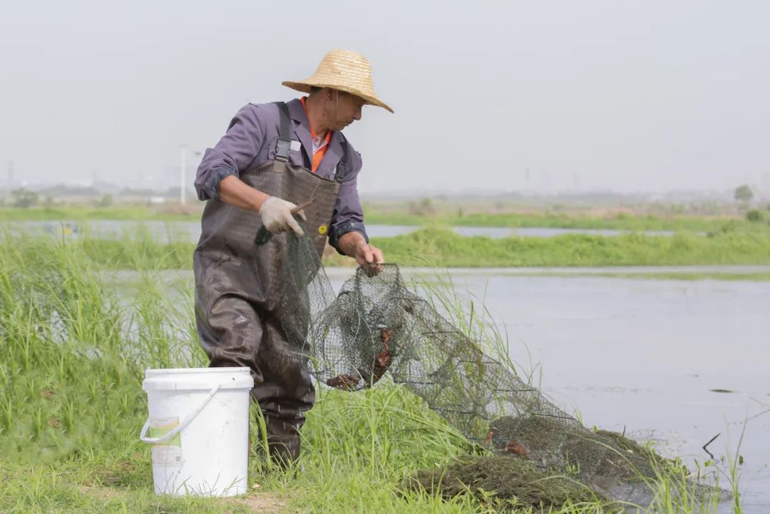 位于祁家灣街雙墩村的武漢中胤生態(tài)農業(yè)專業(yè)合作社內,連片的小龍蝦養(yǎng)殖基地格外壯觀,蝦農們身著防水服,將提前放置在蝦田中的蝦網緩緩撈起,隨著蝦網破水而出,一只只外殼紅亮、活力十足的小龍蝦在網中翻騰跳躍,水波蕩漾間,處處透著生機。