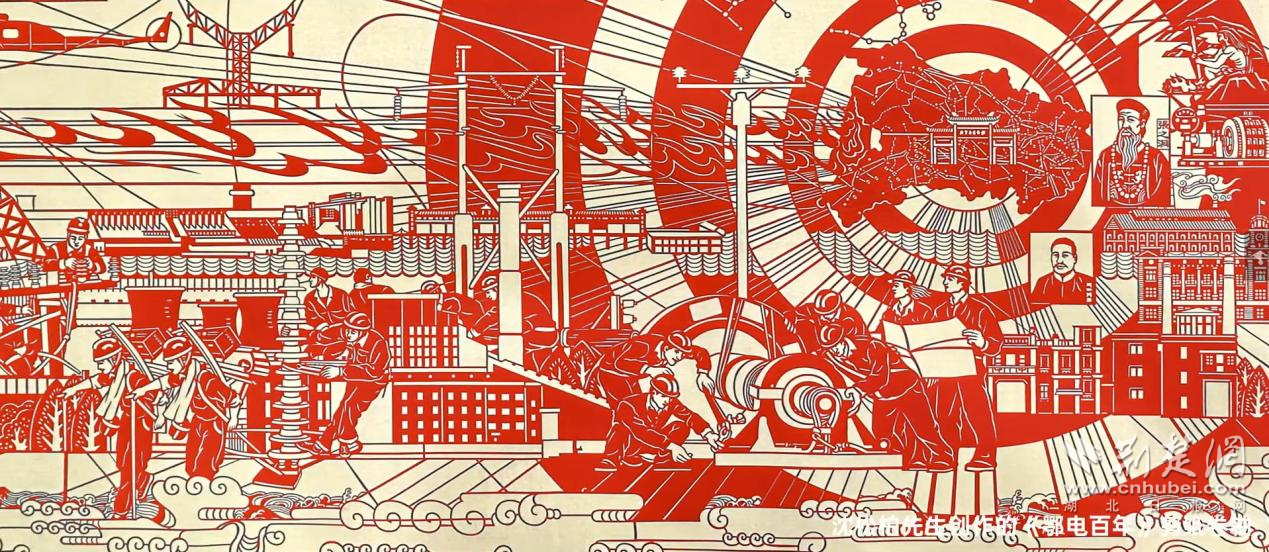 2023年,沈松柏在傳統(tǒng)剪紙手法“金紙刻制、彩紙襯色”的基礎(chǔ)上,通過更為精細(xì)的雕刻,創(chuàng)作出展現(xiàn)湖北電力百年發(fā)展歷程的剪紙長卷《百年鄂電 光耀荊楚》。從1893年湖北點亮的第一盞電燈到三峽水電站的建設(shè),從特高壓變電站到新型電力系統(tǒng)建設(shè),都在這幅6.3米的剪紙長卷上鋪陳開來?!白鳛橐幻娋W(wǎng)企業(yè)員工,通過剪紙這個載體,來表現(xiàn)電力發(fā)展、綠色電力建設(shè)一百年,我覺得非常光榮、非常自豪。”2025年,沈松柏憑借在剪紙藝術(shù)領(lǐng)域的深厚造詣與長期以來的突出貢獻,入選“鄂電銀輝”首批文化先鋒類人才。沈松柏表示,以刀為筆雕刻時代風(fēng)貌,是非遺傳承人的使命,也是驕傲。