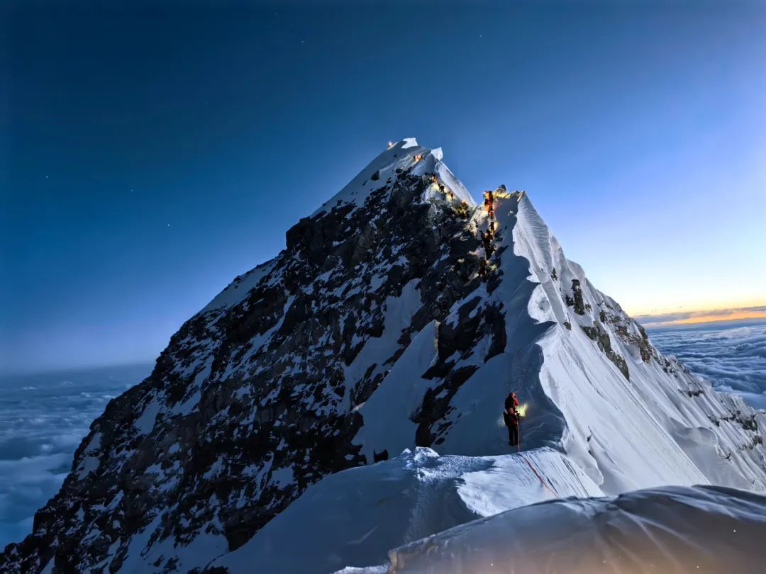 帳篷外,零下40度的極寒讓所有裝備都覆上了一層白霜。他反復檢查著登山裝備:氧氣瓶壓力是否正常、頭燈光源是否充足、冰爪固定是否牢靠。這些熟悉的動作,他已經(jīng)練習了上千遍。