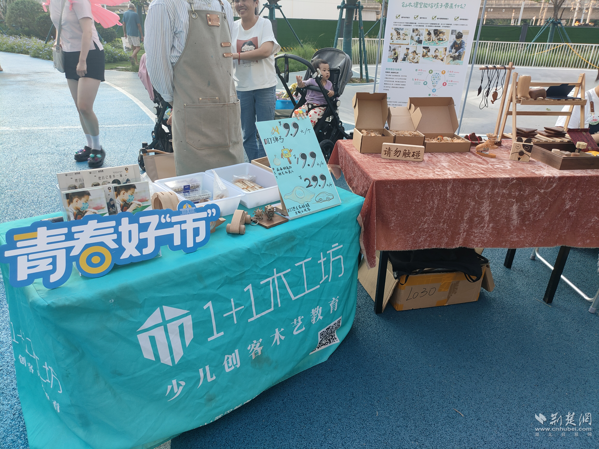 木工師傅帶來手作展示,美術生小夏開的冰粉攤前排起長龍,調(diào)酒師的“泡桐花特調(diào)”供不應求。除了體驗與消費,這個市集還玩起了“技能+公益”的雙重模式:收益的10%(共570元)被捐入社區(qū)慈善基金,業(yè)主群里掀起一波“點贊接力”。