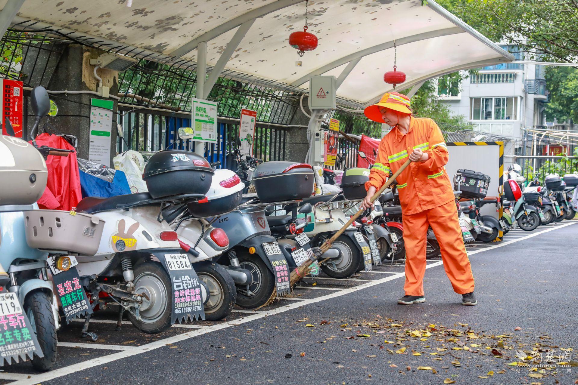 體育中心一帶人流密集,周邊高校、商圈、居民區(qū)扎堆,非機動車保有量大,亂停亂放、私拉亂接的現(xiàn)象一度突出?!霸缤砀叻宓臅r候,電動車能‘插’到哪就停到哪,充電線從窗戶、欄桿上扯下來,既不安全也不好管。”負(fù)責(zé)這一片區(qū)巡查的城管隊員陳強說,最多的時候一條路邊能擠幾十輛車。