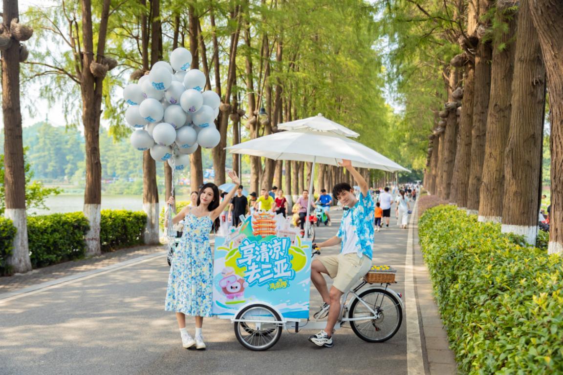 這場(chǎng)熱辣與清涼的碰撞,早已在線上埋下伏筆。此前數(shù)日,武漢各核心商圈的大屏上,三亞的碧海藍(lán)天化作“賽博涼風(fēng)”動(dòng)畫,引發(fā)網(wǎng)友熱議“武漢人蹭三亞空調(diào)真的涼到了”。線上預(yù)熱與線下派送的緊密結(jié)合,讓三亞的舒適印象深入人心?!拔錆h東湖一秒入海cos三亞”等話題登頂兩地?zé)崴寻瘢谑忻裥闹蟹N下一片蔚藍(lán)的“心之所向”,也讓三亞暑期“避暑勝地”的概念深入人心。一顆來(lái)自熱帶的椰子,穩(wěn)穩(wěn)落入了華中、西南城市的煙火人間。