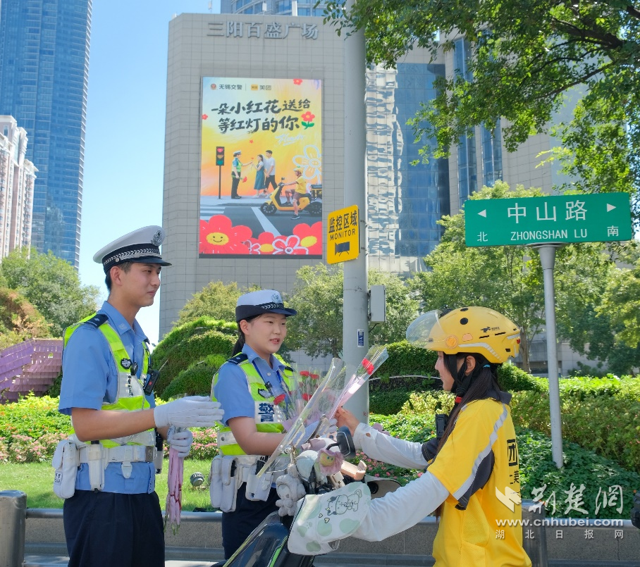 荊楚網(wǎng)(湖北日報網(wǎng))訊(通訊員小雨)8月29日七夕當(dāng)天,美團在西寧、鄭州、蘭州、深圳、武漢等全國16座城市同步發(fā)起“送你一朵小紅花”交通安全倡導(dǎo)行動。各城市交警在十字路口、斑馬線前為遵守交通規(guī)則的騎手和市民送上鮮花及反光貼紙,傳遞“安全出行”理念?;顒蝇F(xiàn)場,近萬人領(lǐng)取到倡導(dǎo)交通安全文明的“小紅花”。據(jù)了解,這是美團在全國發(fā)起的騎手交通安全正向激勵系列活動之一,旨在推動騎手交通安全意識提升與權(quán)益保障的常態(tài)化。