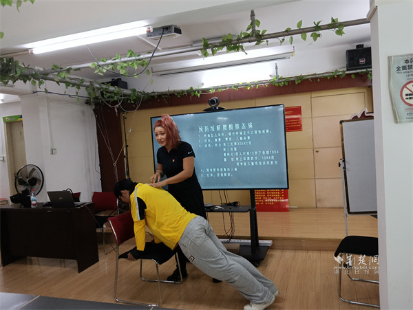 樊容帶領(lǐng)學(xué)員練習(xí)實(shí)用健康知識。 通訊員供圖