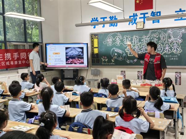 荊楚網(wǎng)(湖北日報網(wǎng))訊(通訊員 陳博龍)為進一步增強青少年毒品防范意識,筑牢校園禁毒安全防線,9月8日,在武昌區(qū)禁毒辦的指導下,積玉橋街道聯(lián)合轄區(qū)派出所、社區(qū)戒毒康復中心及金都藍灣社區(qū),共同走進中華路小學金都校區(qū),開展以“禁毒護航新學期、青春無毒向未來”為主題禁毒教育課堂,通過“宣講+課件+互動+宣誓”的豐富形式,為新學期校園安全增添“防毒屏障”。