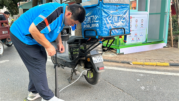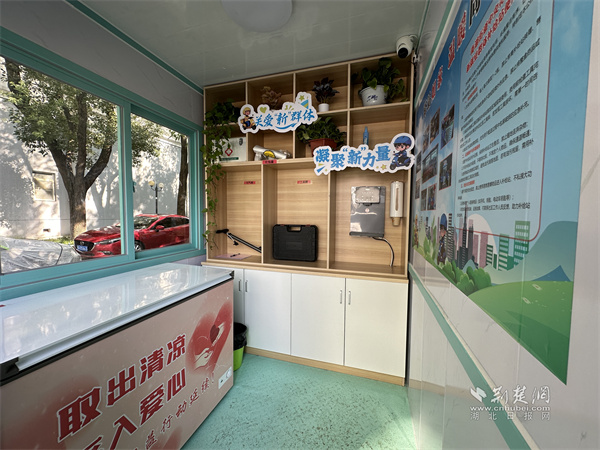 社區(qū)在北大門入口處設(shè)立的“暖心補給站”,成了小哥們的“能量加油站”。拉開補給站的冰柜,冰爽的礦泉水整齊擺放;醫(yī)藥箱里,創(chuàng)可貼、碘伏、藿香正氣水等應(yīng)急藥品一應(yīng)俱全;維修工具箱和電動打氣筒已幫十多位小哥解決過電動車爆胎、零件松動的難題;打包袋也方便了小哥臨時更換破損外賣包裝?!跋奶焖屯瓴停瑏磉@兒取瓶冰水,渾身的燥熱都散了,心里也涼快!”快遞小哥王師傅邊說邊拿起一瓶水,臉上滿是滿足。