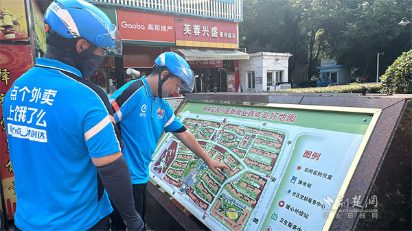 此外,社區(qū)還貼心優(yōu)化配送環(huán)境。小區(qū)出入口立起全景圖立牌,清晰標(biāo)注配送路線和臨時停車位;主干道增設(shè)24個指引牌,44棟樓都裝上了夜光樓棟牌,路口盲區(qū)的凸面反光鏡,守護(hù)著小哥的騎行安全。不僅如此,社區(qū)還經(jīng)常組織小哥們開展活動,盛夏送清涼時,遞上防暑物資;趣味運動會上,一起玩“大錘打氣球”“摸石過河”,歡聲笑語中拉近了彼此的距離。