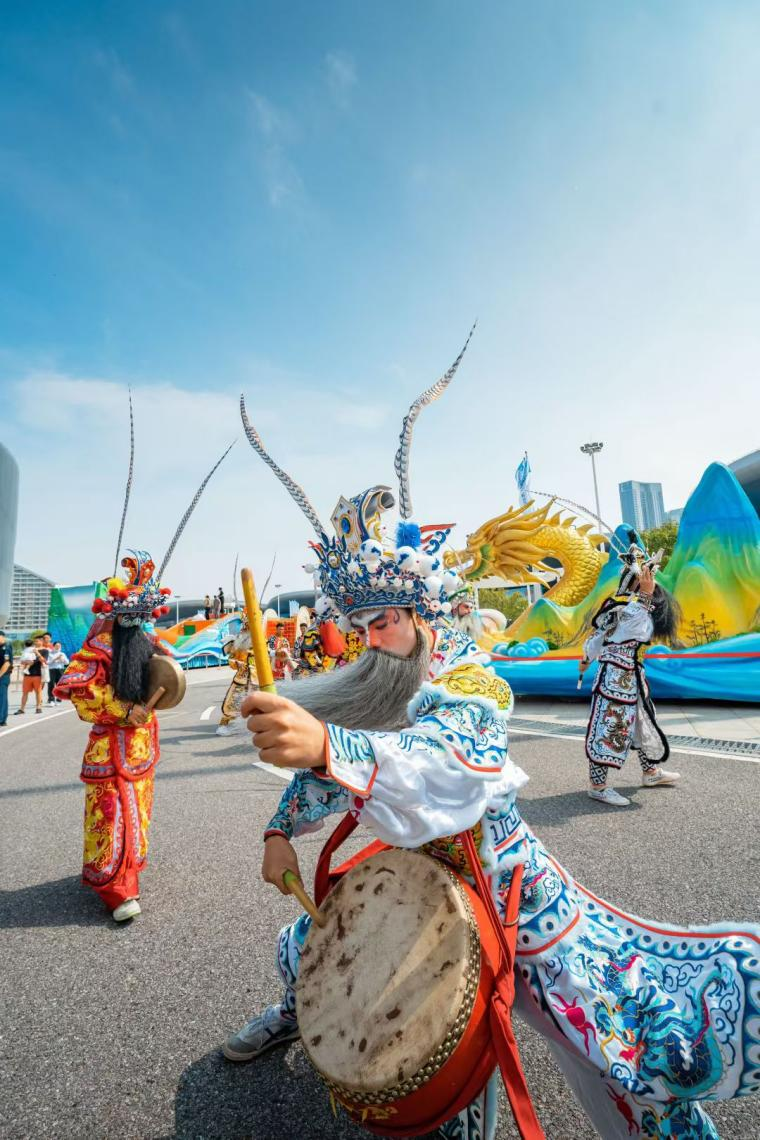 在展館內(nèi)外可以看到,各展區(qū)人頭攢動(dòng),在廣東長(zhǎng)隆展區(qū),兩點(diǎn)半的演出還沒(méi)開(kāi)始,人流已經(jīng)里三層外三層打圍。伴著強(qiáng)勁律動(dòng),外籍演員們還邀請(qǐng)觀眾共舞互動(dòng),現(xiàn)場(chǎng)氣氛爆棚。展館內(nèi)部,韓國(guó)館、陜西館等展位的熱舞、非遺展演成了焦點(diǎn)。多種多樣的智能設(shè)備體驗(yàn)等,更成為小朋友的樂(lè)園。