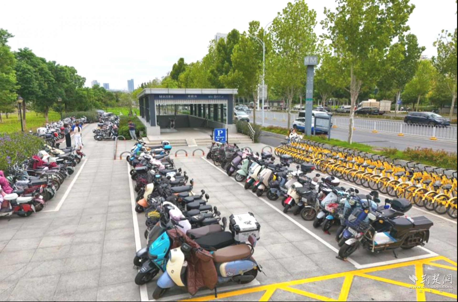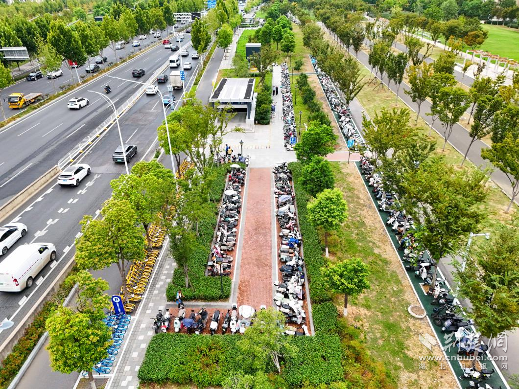 荊楚網(湖北日報網)訊(記者 何婧 通訊員 汪玉平 黃慕潔 羅樂)清晨七點半的金山大道,陽光正好灑在二雅路地鐵站C出口。王女士騎著小電動,熟練地把車停進新劃的白色線框里?!艾F在可算不用兜圈子找車位了!”她鎖好車,抬眼看了看站口那塊醒目的藍牌子——“居民電動車??奎c”“共享單車區(qū)”,幾個大字清清楚楚。不過幾分鐘,她已經刷卡進站,步履輕松。