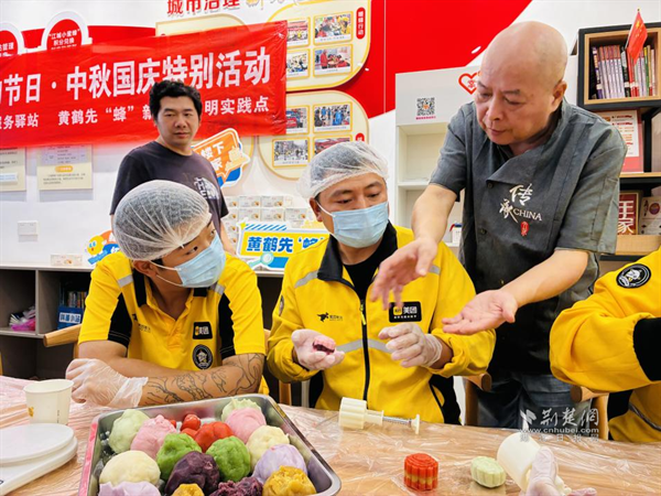 巧手制餅話團(tuán)圓?!靶「缭嘛炇肿鞣弧杯h(huán)節(jié),在武昌區(qū)“新興學(xué)院”教學(xué)點(diǎn)、文昌高級(jí)職業(yè)學(xué)校西點(diǎn)老師的指導(dǎo)下,大家動(dòng)手制作印有“中秋”“黃鶴樓”“黃鶴樓下是我家”等字樣的專屬月餅。制作完成后,大家手捧作品在主題背景板前拍照留念,大家親手制作印有“中秋”“黃鶴樓”“黃鶴樓下是我家”等字樣的特色月餅。制作完成后,參與者手捧作品在主題背景板前合影,驛站提供的即時(shí)打印服務(wù)讓這份團(tuán)圓記憶即刻成真,溫暖留存。