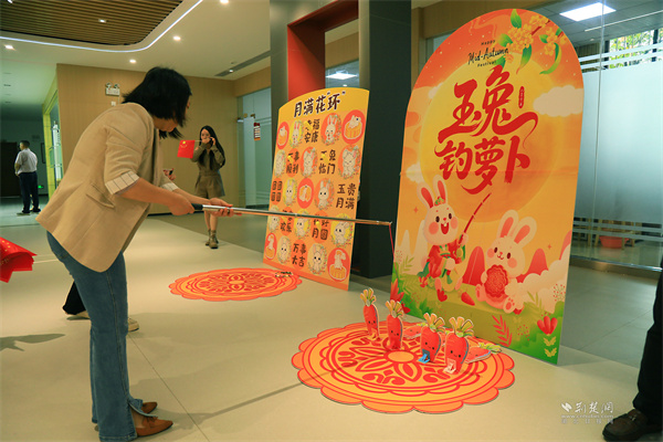 “家國同心”祝福墻上,貼滿了各族群眾對祖國與未來的美好祝愿;融合雙節(jié)元素的主題背景前,一張張合影定格了大家燦爛的笑臉。雅歌投壺、玉兔釣蘿卜等趣味游戲,既趣味盎然,也成為促進各族居民互動交融的橋梁。整場活動以文化為紐帶、以情感為基礎,生動繪就了一幅各族群眾守望相助、團結奮進的和諧畫卷。