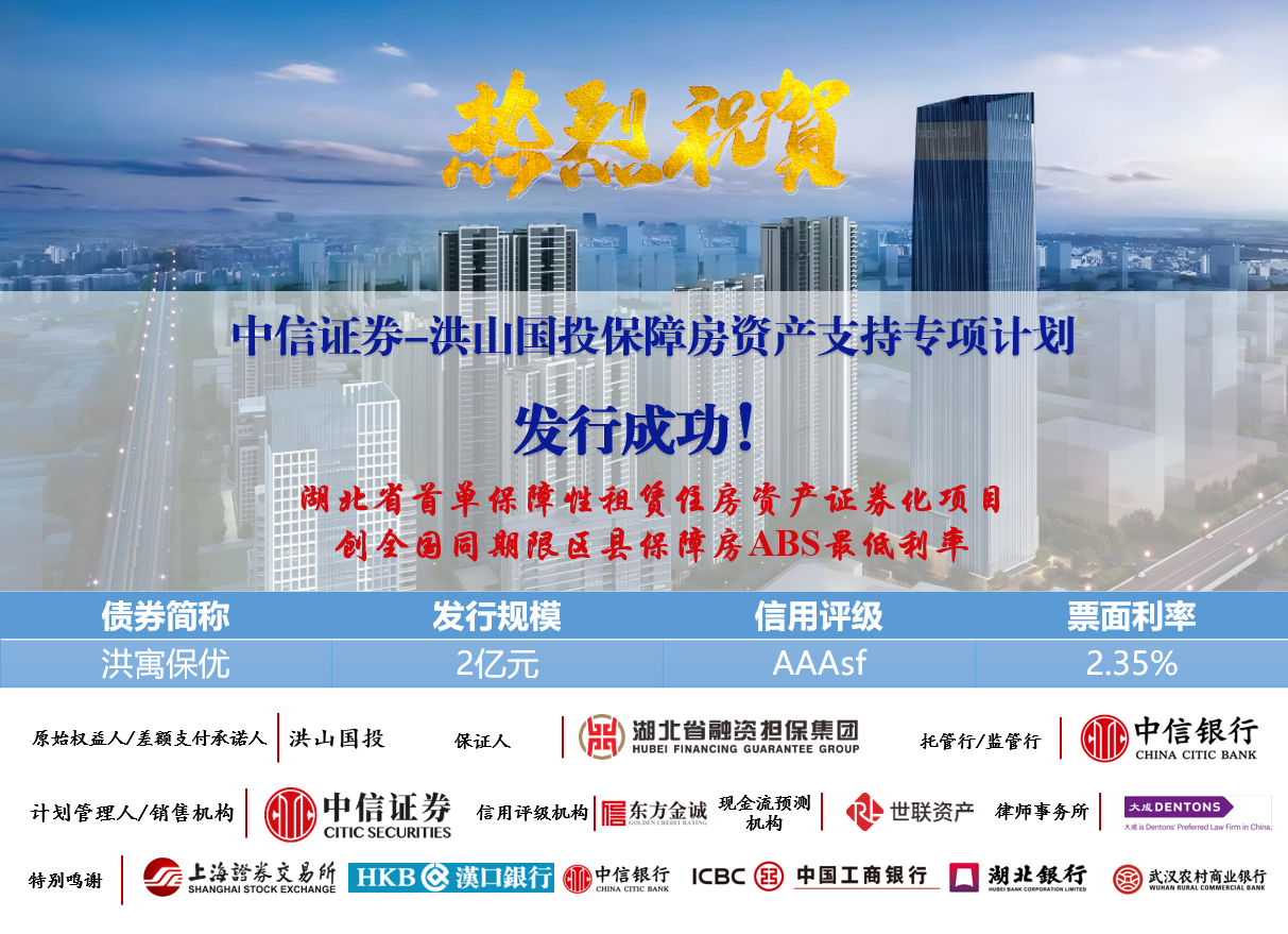 洪山國投保障房ABS的成功發(fā)行,既是公司叩開資本市場大門的“亮眼首秀”,更是洪山區(qū)屬國企在資產(chǎn)證券化領(lǐng)域突破前行的生動注腳。它不僅幫助企業(yè)優(yōu)化了資產(chǎn)負債結(jié)構(gòu)、逐步構(gòu)建起存量資產(chǎn)市場化運營能力,為企業(yè)經(jīng)營注入強勁活力,更為地方國企探索資產(chǎn)盤活路徑提供了可復制、可推廣的實踐樣本,為產(chǎn)業(yè)能級提升、經(jīng)濟高質(zhì)量發(fā)展注入源源不斷的動力,讓“國有資產(chǎn)證券化”的思路落地生根。