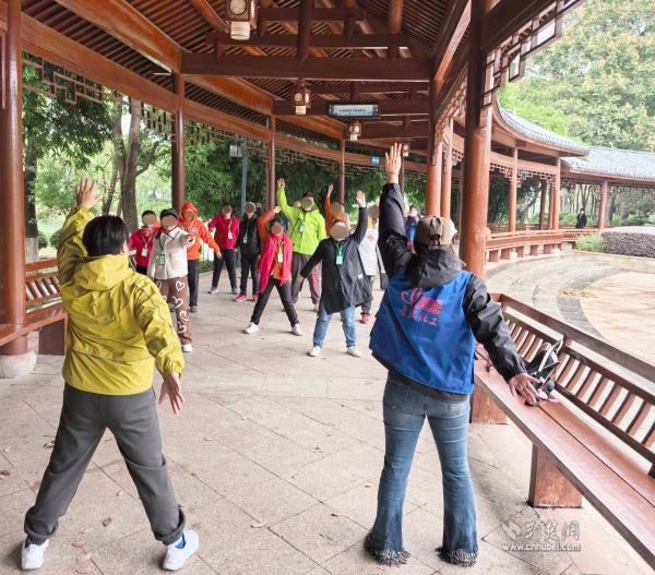 抵達公園后,全體人員在指導下進行熱身操活動。簡單的互動游戲不僅驅散了清晨的涼意,也進一步調動了參與者的積極性,為后續(xù)游覽營造了輕松愉快的氛圍。