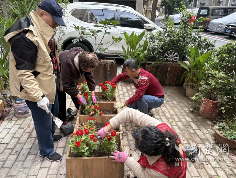 活動(dòng)中,居民們分組協(xié)作、默契配合,松土、栽苗、澆水,忙得不亦樂(lè)乎。不一會(huì)兒,五彩花苗在清理后的土地上次第成行,荒蕪的空地變成了一片生機(jī)盎然的花園?!翱粗约河H手種下的花,以后每次路過(guò)都會(huì)多一份牽掛?!本用裢鮽髌叫χf(shuō)。