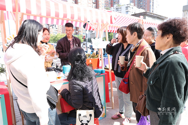 活動(dòng)設(shè)置互動(dòng)體驗(yàn)與文藝表演兩大區(qū)域,現(xiàn)場(chǎng)熱鬧非凡?;?dòng)體驗(yàn)區(qū)的“DIY調(diào)飲攤”前,居民們親手調(diào)配創(chuàng)意茶飲,在沖泡間感受茶飲的多樣魅力;氛圍打卡點(diǎn)深受年輕居民青睞,大家紛紛拍照留念,并通過社交媒體分享活動(dòng)盛況,實(shí)現(xiàn)線下體驗(yàn)與線上傳播的有效聯(lián)動(dòng)。