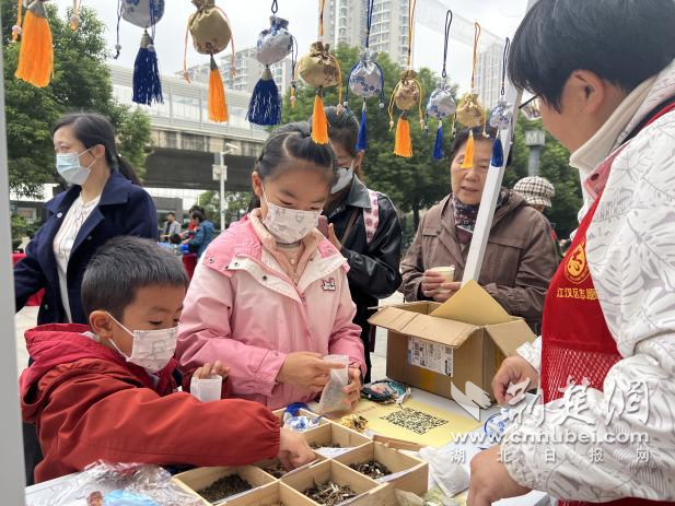 體驗(yàn)區(qū)里,社工帶領(lǐng)孩子們動手制作茱萸香囊,講述“佩茱萸祈福避災(zāi)”的古老風(fēng)俗。孩子們捧著親手做好的香囊,迫不及待地想送給家里的長輩。公益集市的人氣更是高漲,非遺絨花攤位展示傳統(tǒng)之美,慈善義賣匯聚鄰里愛心,植物醫(yī)生攤位傳遞健康養(yǎng)生理念。