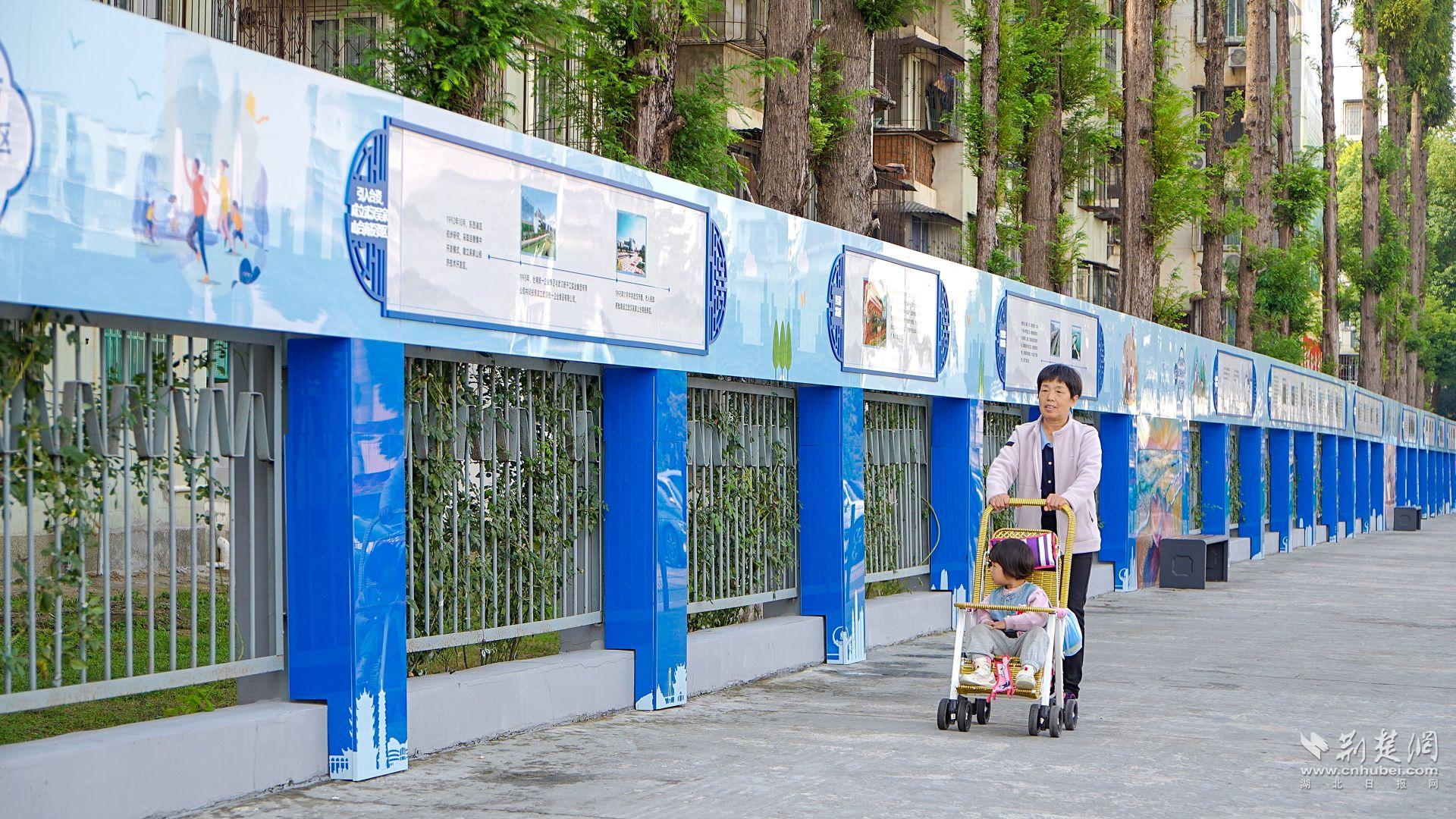 圍墻和彩繪也成了亮點。專業(yè)團隊在相鄰居民樓外墻繪制325平方米主題壁畫——一面呈現(xiàn)“魅力東西湖”的城市風貌,一面展現(xiàn)“幸福新常青”的生活圖景,成為社區(qū)新地標。
