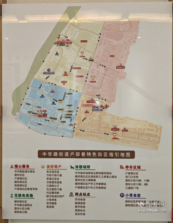 這一切的背后,是“戶(hù)部巷老茶館”聯(lián)席議事制度的有力支撐。騎手停車(chē)難?社區(qū)立即協(xié)調(diào),騰挪出專(zhuān)用停車(chē)位。取餐高峰期擁擠?社區(qū)出面與商戶(hù)溝通,促成“騎手優(yōu)先”的默契。社區(qū)還聯(lián)合騎手們,共同繪制了一份戶(hù)部巷友好街區(qū)地圖,清晰標(biāo)注出“小哥食堂”、友好商家、充換電點(diǎn)等關(guān)鍵位置,成為騎手們?nèi)耸忠环莸摹肮ぷ鲗毜洹?。從“關(guān)鍵小事”到“發(fā)展大事”,騎手們的建議真正做到了“件件有回應(yīng),事事有著落”。
